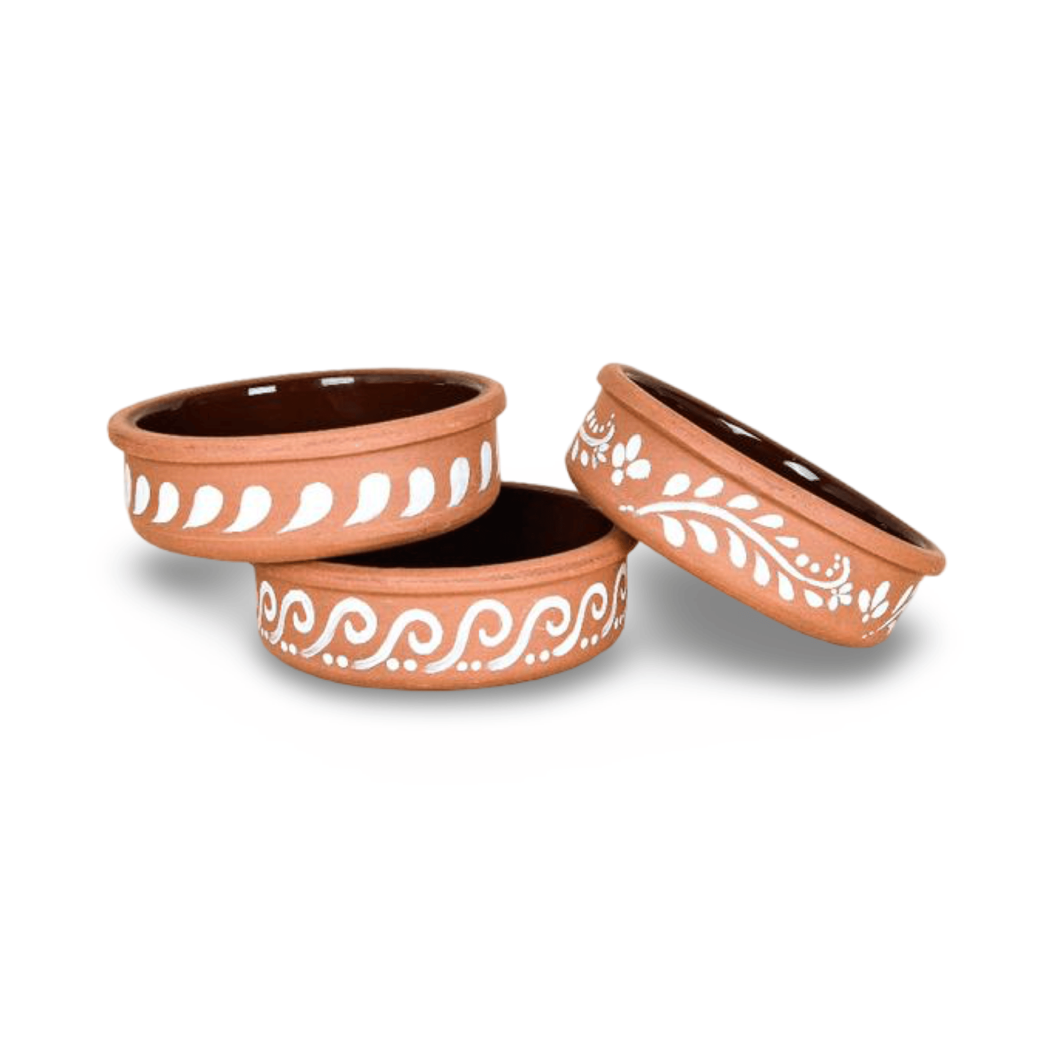 Because each ramekin is individually hand-painted by artisans, subtle variations in brushwork, color intensity, and evil eye details make your set authentically unique—no two are exactly alike, ensuring your table setting is truly one-of-a-kind. The natural clay develops character with use, telling the story of meals shared and memories made. Pair with our Clay Ramekins with Evil Eye Design for a coordinated Mediterranean-inspired table setting.