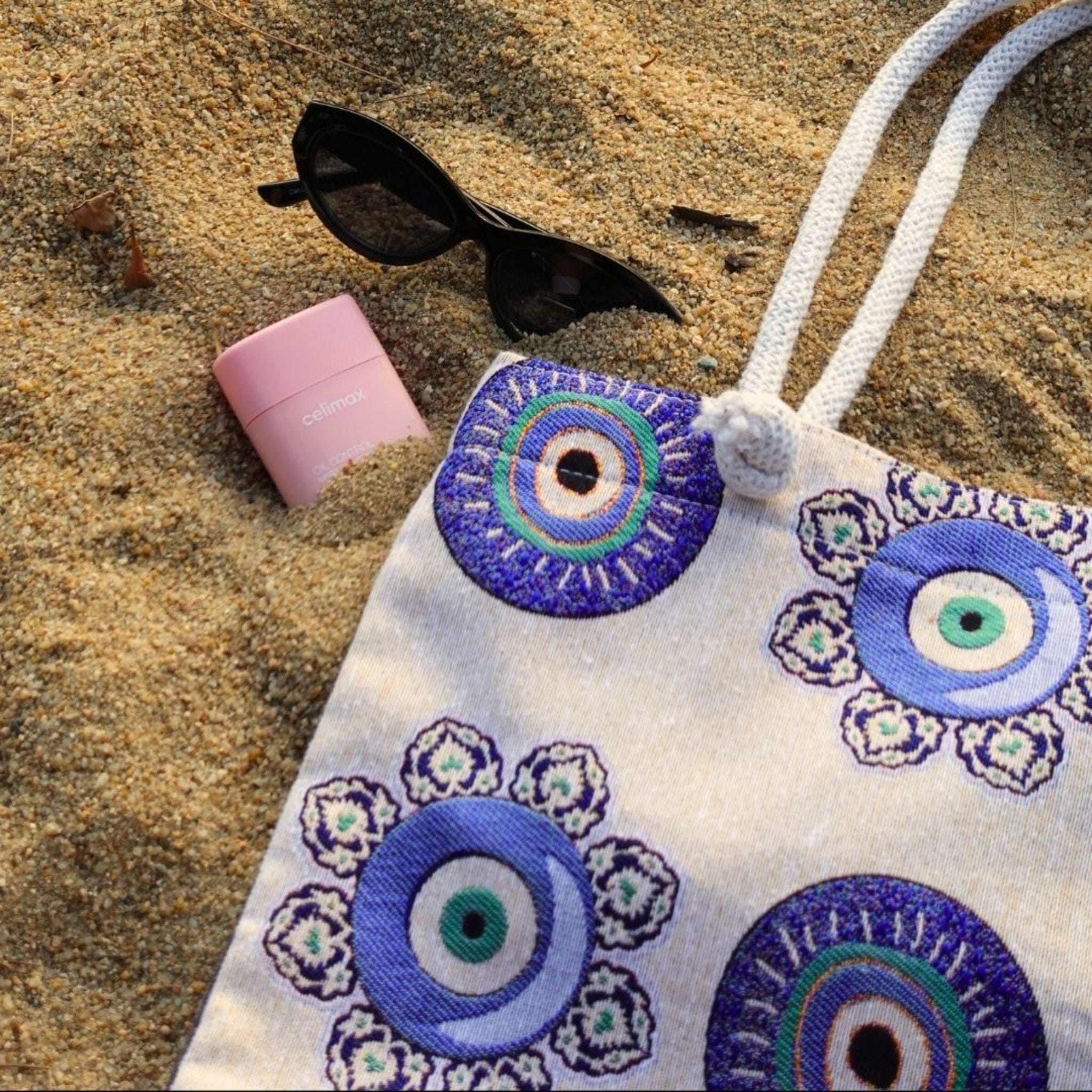 Channel the spirit of ancient Phoenician seafarers with the Byblos Evil Eye Canvas Beach Bag, built for active coastal exploration...