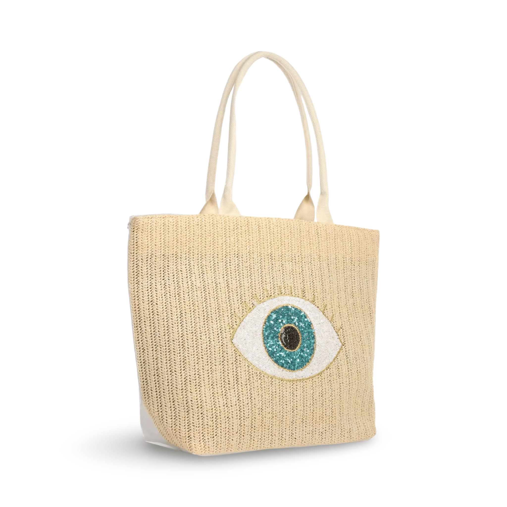 Bring playful energy to every beach day with the Salmiya Evil Eye Beach Bag, where vibrant sequins create a fun,...
