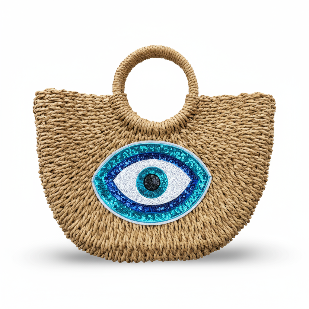 Discover effortless elegance with our Eliza Evil Eye Beach Bag, a sophisticated companion that blends artisanal craftsmanship with protective charm. This beautifully crafted straw tote showcases an eye-catching sequins Evil Eye design that adds a touch of sparkle and symbolism to your summer style.