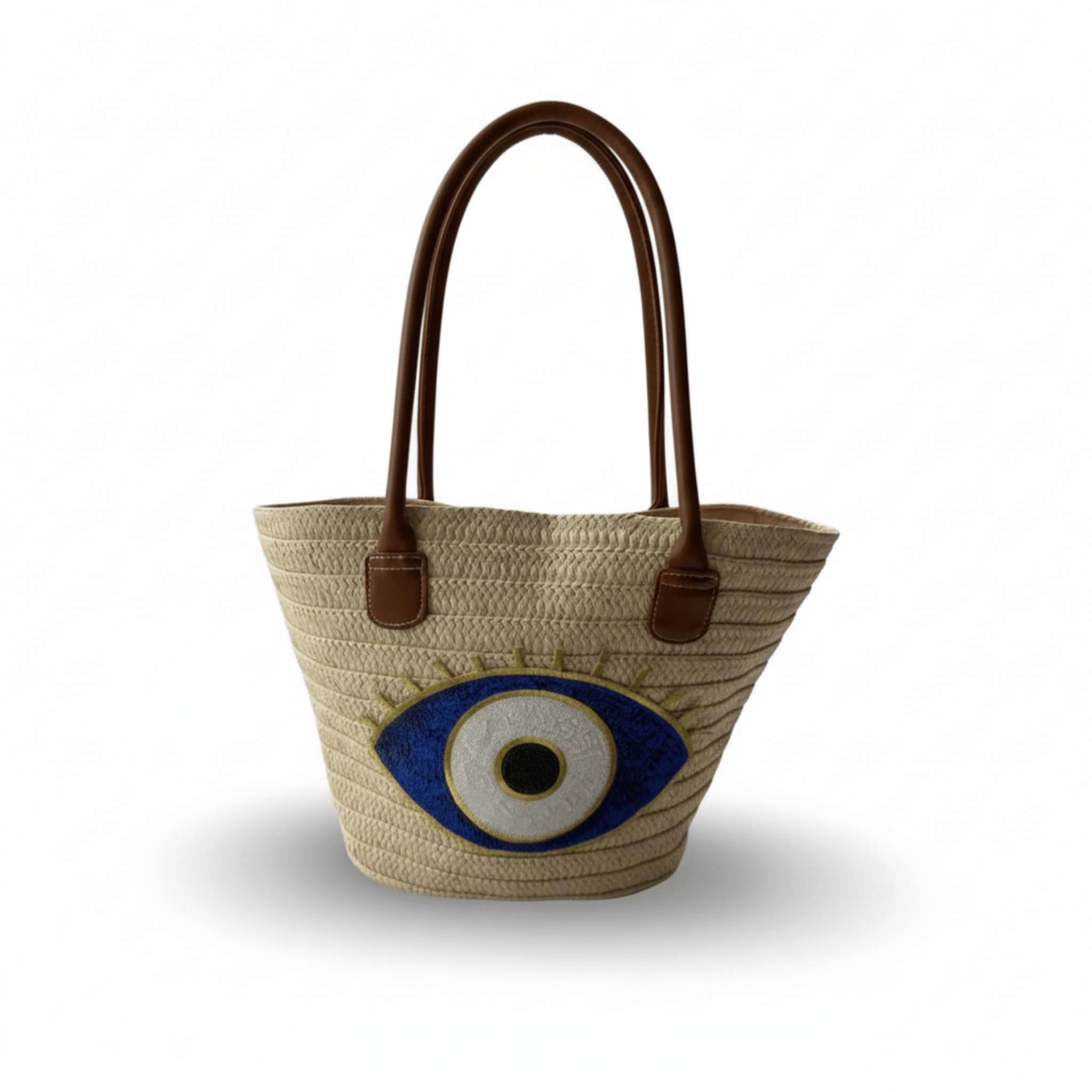 Discover understated glamour with the Jahra Evil Eye Beach Bag, where delicate sequin detailing brings refined sparkle to natural beige straw. This isn't about making a loud statement—it's about sophisticated shine that catches the light with elegant subtlety. Artisans carefully apply sequins to create a graceful evil eye motif that offers ancient protection while maintaining a polished, contemporary aesthetic. At 29 x 43 cm and weighing just 396 grams, Jahra is the epitome of effortless chic—compact, lightweight, and perfectly proportioned for the woman who values quality over quantity.
