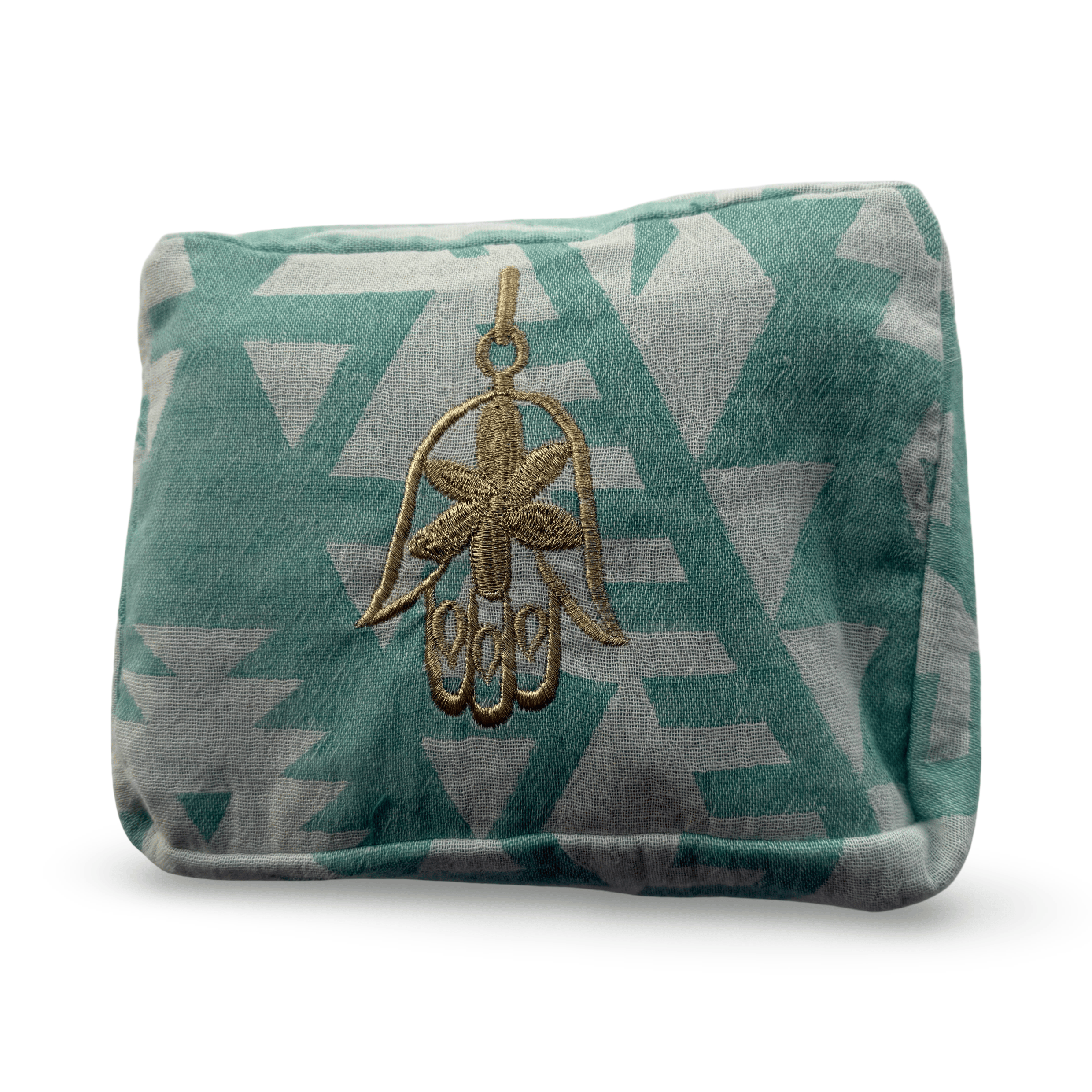 The Cyan Ohana Cosmetic Pouch radiates freshness and vibrant energy with its vivid cyan hue. This striking, luminous shade brings a burst of colour to your daily routine while remaining versatile enough to complement any handbag. Master artisans in Lebanon execute each hamsa motif with precision, their needlework honoring generations of textile expertise.