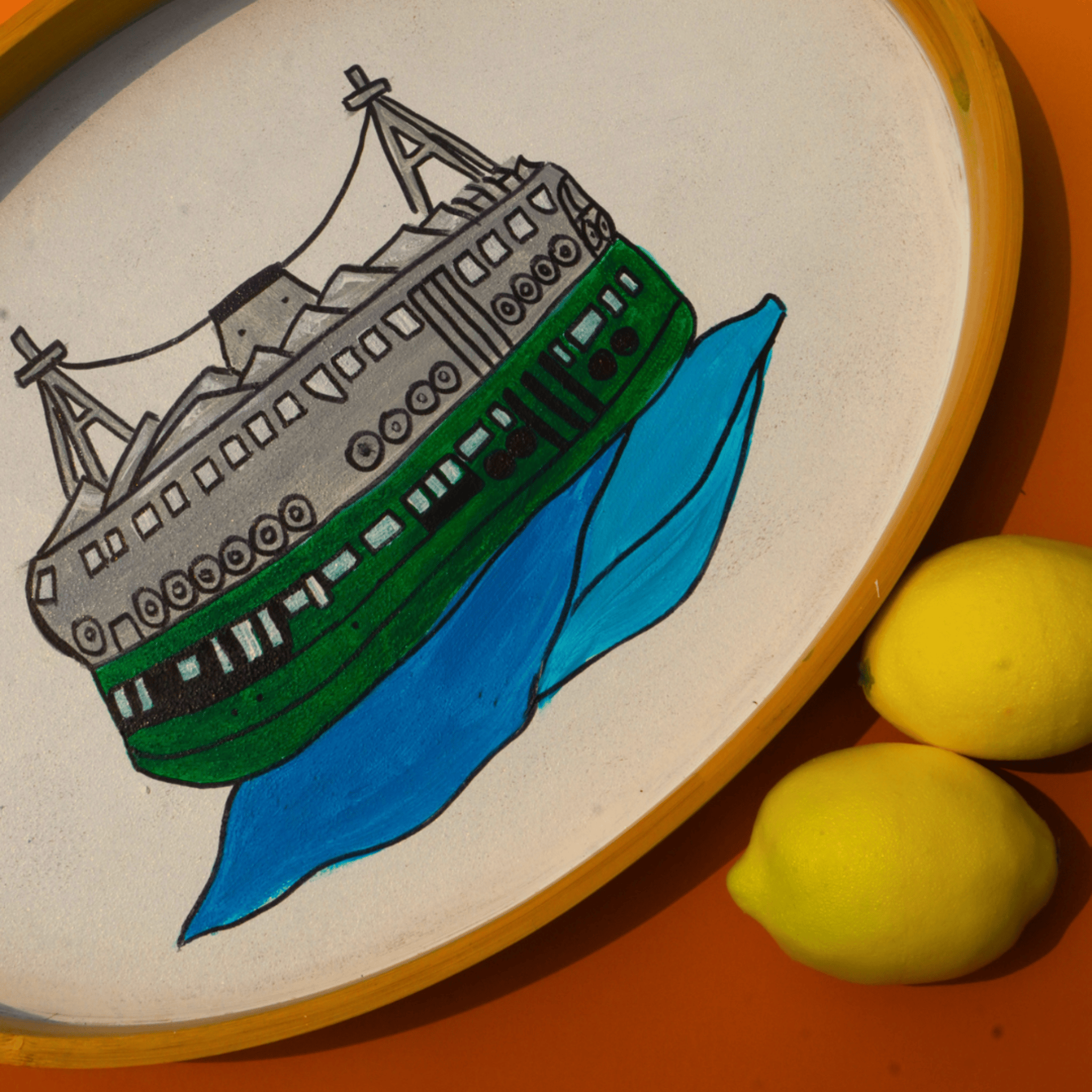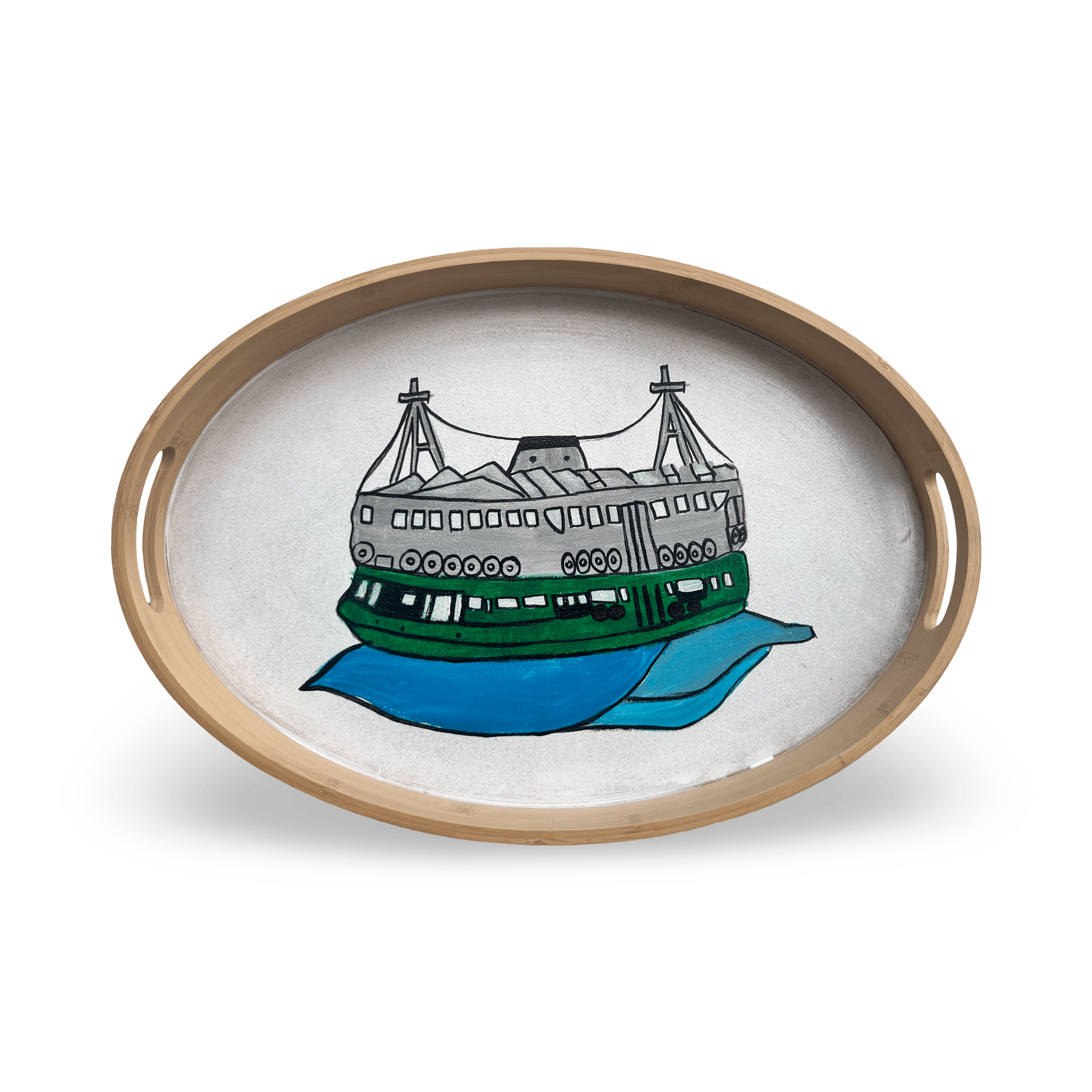 Hand-painted by skilled artisans in Jordan, each Hong Kong Star Ferry Tray brings the vibrant energy of Hong Kong's iconic green-and-white ferries to your home. Artisans meticulously hand-paint the beloved Star Ferry design onto this beautiful Hong Kong serving tray, capturing the bold colors and cultural charm of the legendary ferries that have crossed Victoria Harbour since 1888. This stunning piece of HK home decor makes every gathering pop with Hong Kong spirit. Because each tray is individually hand-painted, slight variations in the artwork make every piece uniquely yours—no two trays are exactly alike. Perfect for serving snacks and drinks or displaying as a statement piece, this Hong Kong souvenir is ideal as a Victoria Harbour gift or Hong Kong collectible. Whether you're looking for authentic Hong Kong memorabilia or a unique Hong Kong gift for ferry enthusiasts, this tray brings the city's maritime heritage to life. Handwash gently to keep the artwork cruising in style! For an alternative style, check out our Hong Kong Taxi Tray.
