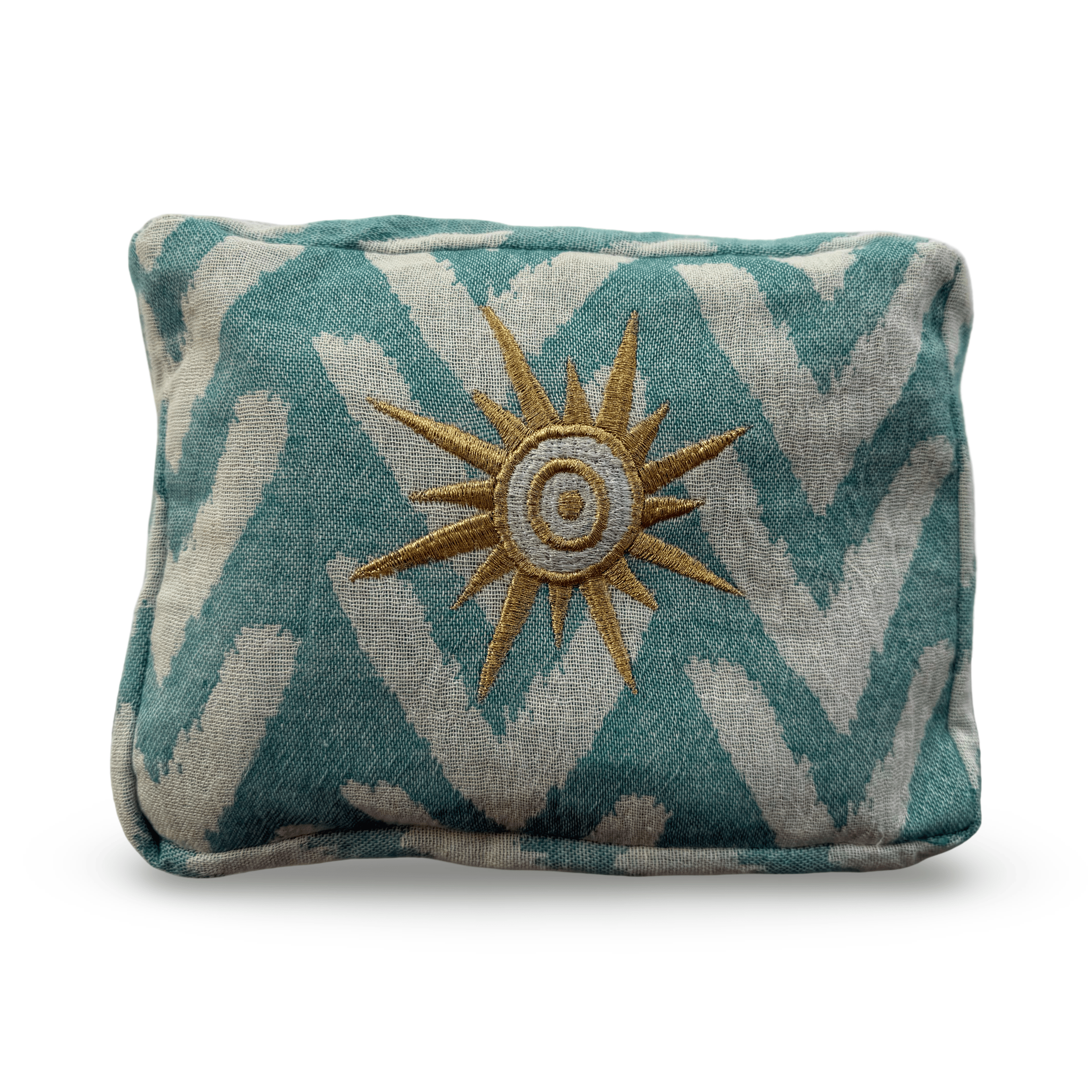 The Teal Ohana Cosmetic Pouch radiates warmth and feminine energy with its rich teal hue. This flattering shade complements every skin tone while adding a touch of elegance to your daily routine. Master artisans in Lebanon execute each protective motif with precision, their needlework honoring generations of textile expertise.