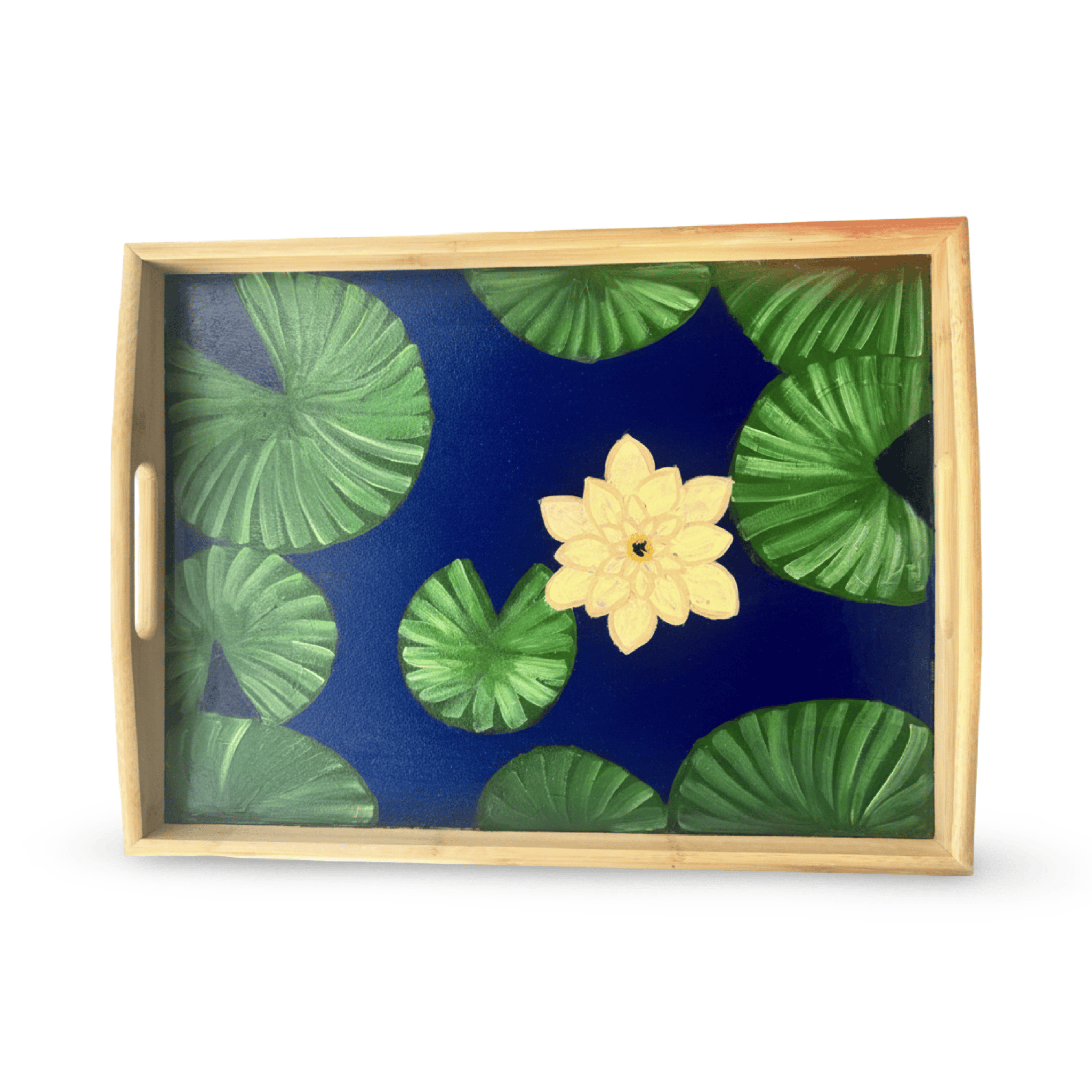Embrace the sacred symbolism of the water lily with the Yellow Water Lily Tray, where Jordanian artisan craftsmanship meets ancient meaning. Painted by skilled artisans in Jordan's traditional workshops, this tray celebrates the flower revered across Eastern cultures as a symbol of enlightenment, purity, and rebirth. The bloom rises from muddy waters to pristine beauty, representing the soul's journey from darkness to light, making this tray a meaningful addition to mindful homes.